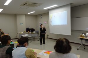 研修ではまず、子どもたちとおりがみを楽しむ際の「声かけ」の大切さについて教えていただきました。三角を折ったときに「これ、何に見える?」と問いかけて発想を広げたり、お花を折ったあと「逆さまにすると猫にも見えるね」と視点を変えたりすることで、子どもたちの豊かな想像力を自然と引き出せることを学びました。