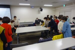 第2回のフォローアップ研修会は、令和8年2月10日に北九州市のコムシティにて開催しました。特定非営利活動法人福岡市レクリエーション協会常務理事の原田弘美先生をお迎えし、「あそびのチカラ」をテーマに、子どもとの関わり方について学びました。前半の講義では、遊びとは「今を夢中で楽しむこと」であり、その体験が心の成長や社会性、想像力など、未来を生きる力につながることを分かりやすくお話しいただきました。また、挑戦する力や感情を調整する力など、遊びの中にある育ちの要素についても理解が深まりました。さらに、子どもの自己肯定感を育むためには教えすぎず見守り、結果より過程に寄り添い気持ちを受け止める関わりが大切であることを再認識しました。後半の実技では「正しくタッチ」や「手裏剣ゲーム」などシンプルなのに思わず夢中になる遊びを次々と体験。会場には笑顔があふれ「こんな遊びがあるんだね。」「子どもたちと一緒に試したい。」といった声が聞かれました。また、身近な材料を使った「カップでボール」や「プロペラ飛ばし」では、大人も子どもも一緒に楽しめる遊びの魅力を改めて実感。明日からの子どもとの関わりがさらに楽しみになる温かい学びの時間となりました。