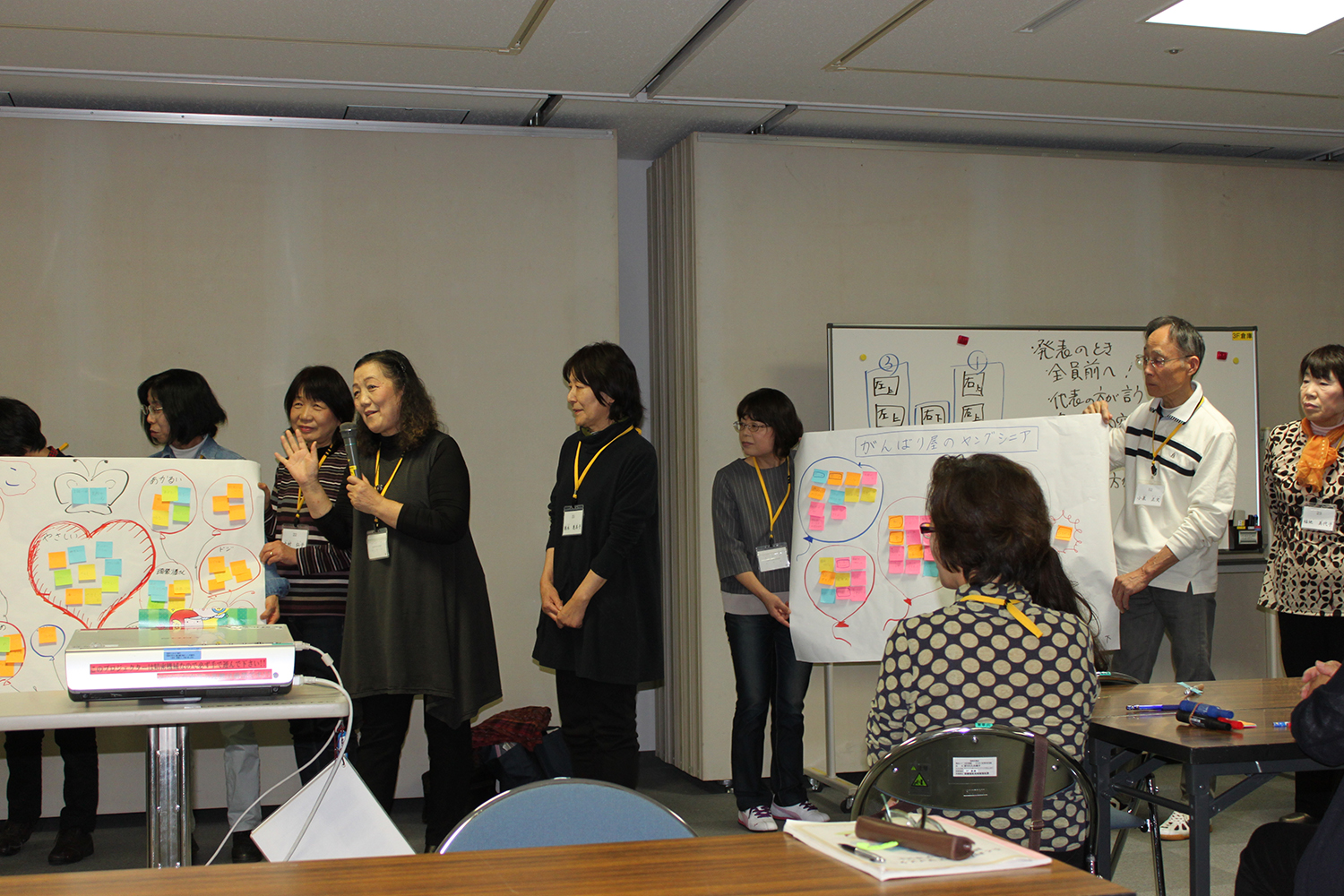 今回ご紹介するのは「コミュニケーションの方法」という研修会の様子です。自分の性質を知るためのグループワークや、よりよい聴き方の実践など、実際に動いて学ぶことを多く取り入れており、子育て支援に限らず、日頃の生活に役立てることができる内容です。受講者の皆さんは元からとても関係づくりにたけている方々ですが、輪をかけてコミュニケーションの達人になるんですよ。